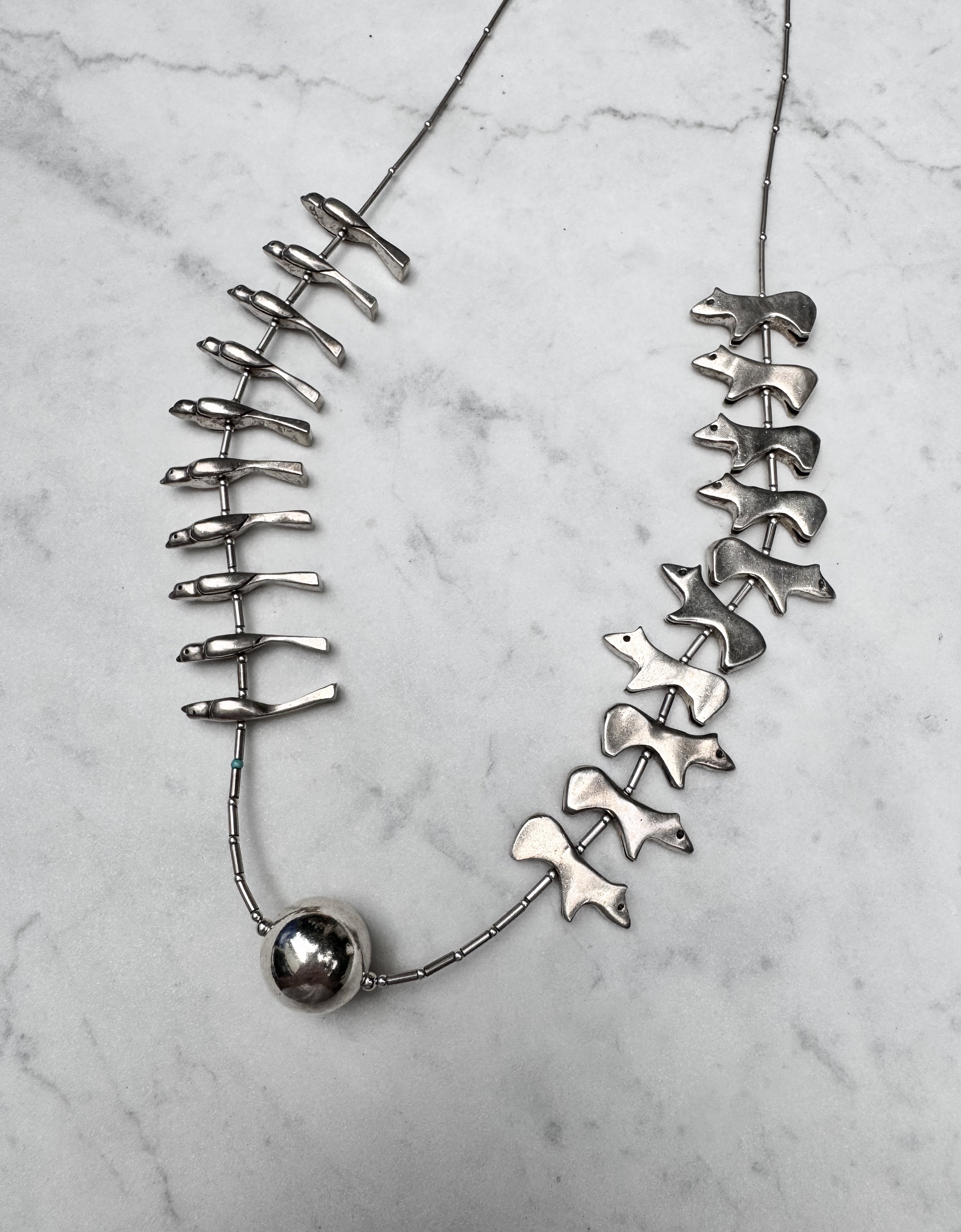 Antique Zuni Solid Silver Fetish Necklace